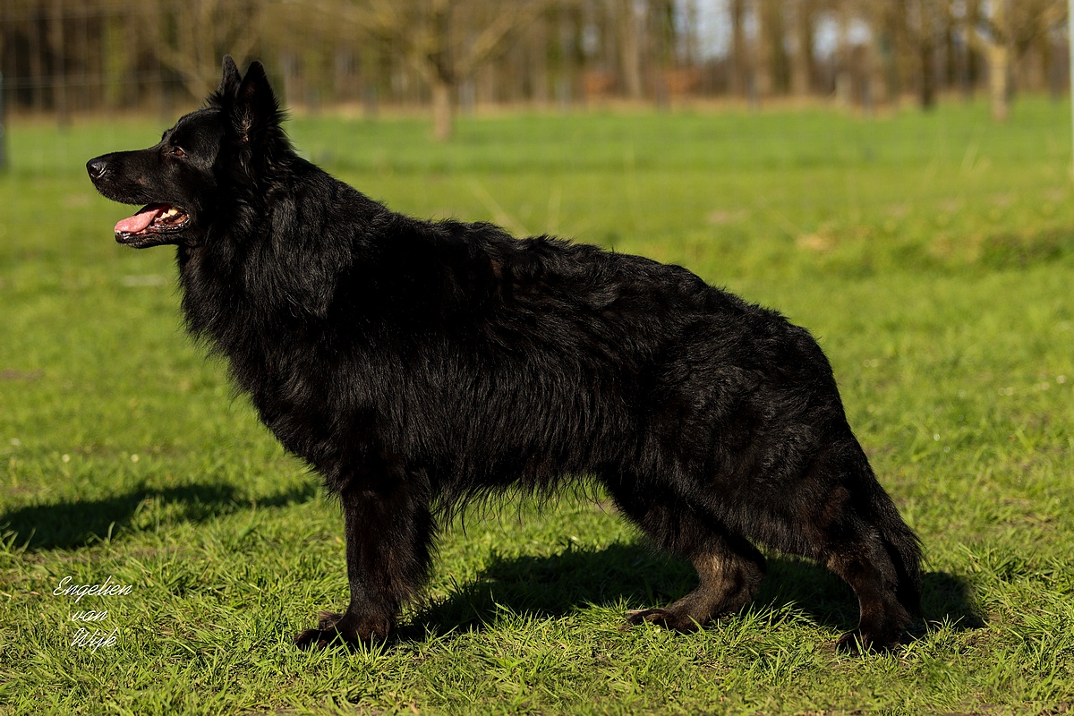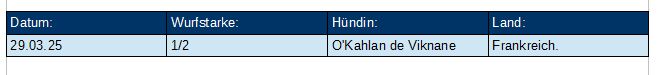 Schau 01.12.24 : ein mittelgroße, mittelkräftige ausreichend gehaltvolle Rüde in korrekten Verhältnis stehend. Schwarz Pigmentiert. Gute Kopf mit gutem Auge, korrekt getragene Ohren. Etwas flache Widerrist, gerade Rücken, die Croupe ist etwas kurz, leicht abschüssig, er ist vorne u. Hinten gut gewinkelt. Er hat ausreichend vorbrustbildung. Ein etwas kurze Unterbrust. Kommt sehr gut mit und ist gut vorbereitet. Hat ein harmonisches Gangwerk mit genügend wirkende Nachschub. Der Vortritt sollte freier sein.