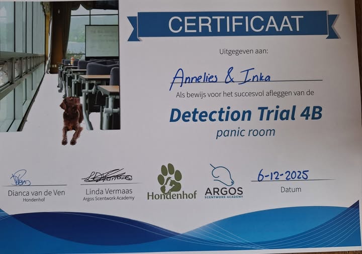 Van harte gefeliciteerd Annelies en Inka vom Weiner Drachen met jullie Diploma Detection Trial 4B. Otto&Britt