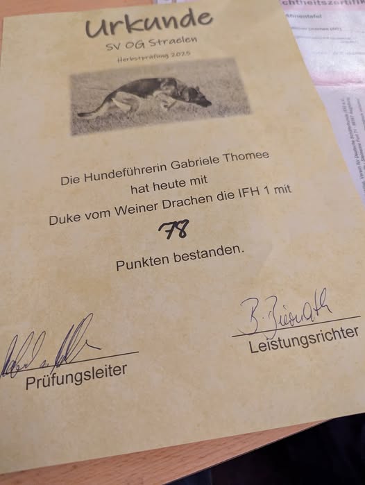 Am 15.03.2025, hat Roy mit Falkor und Brandy vom Weiner Drachen die IGP2 bestanden unter LR Bodo Jürgens. In unsere Ortsgruppe Ochtrup-Oster Danke an unsere OG für alle Unterstützung und an alle die da waren zum Daumen drücken. Falkor hatte mit 92 Punkte auch die beste SD vom Verein. Engelien besteht die FPR3 mit Britt vom Weiner Drachen.